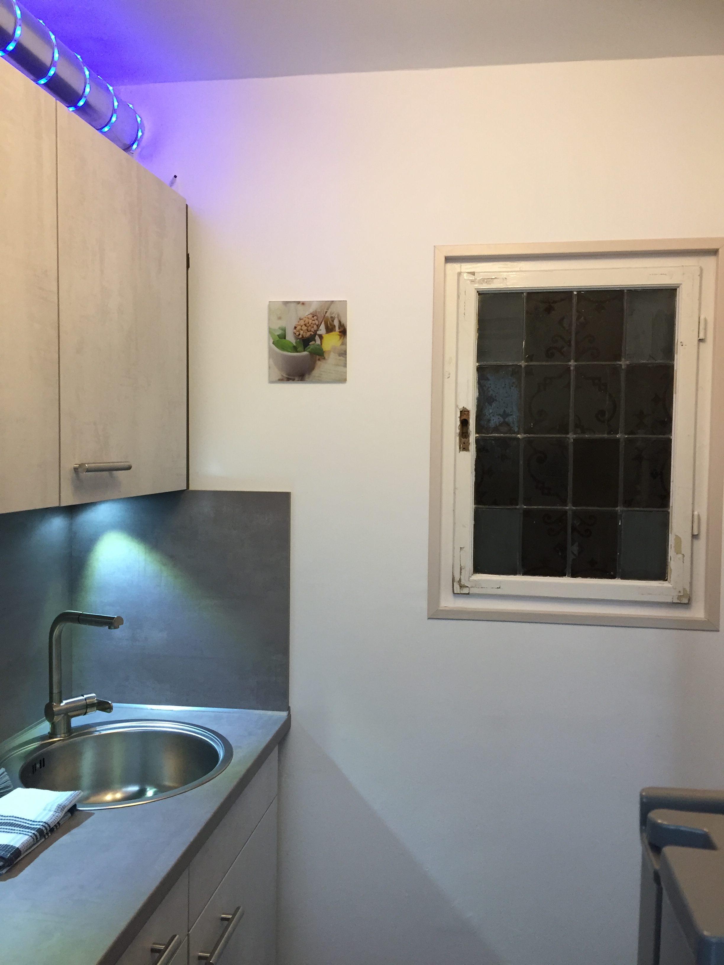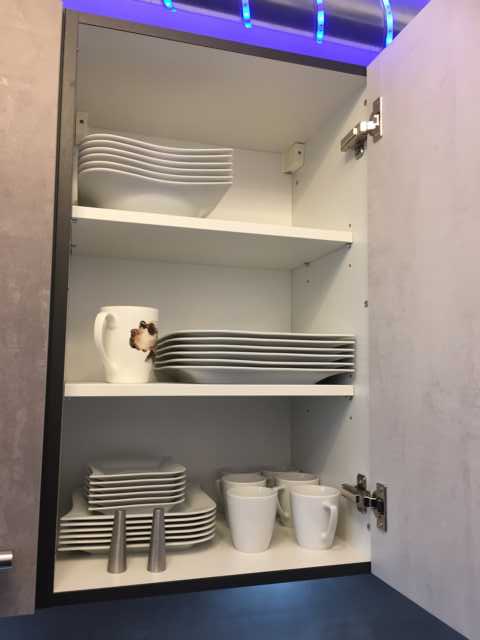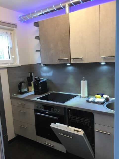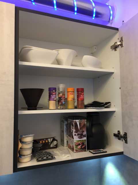 Durch die RGB-LED Beleuchtung sind die verschiedensten Lichtefekte in Küche, Wohnzimmer und Abseite möglich.