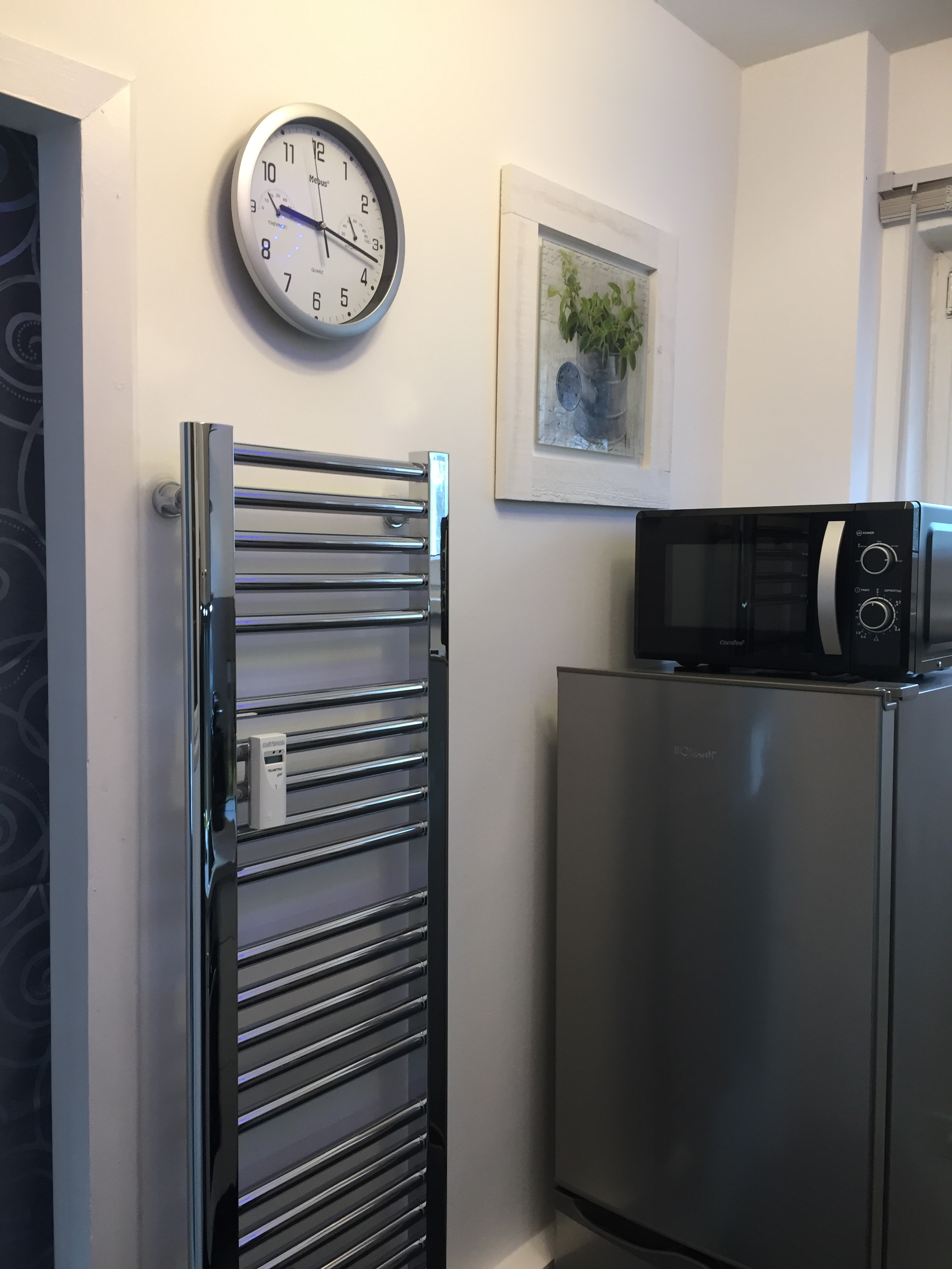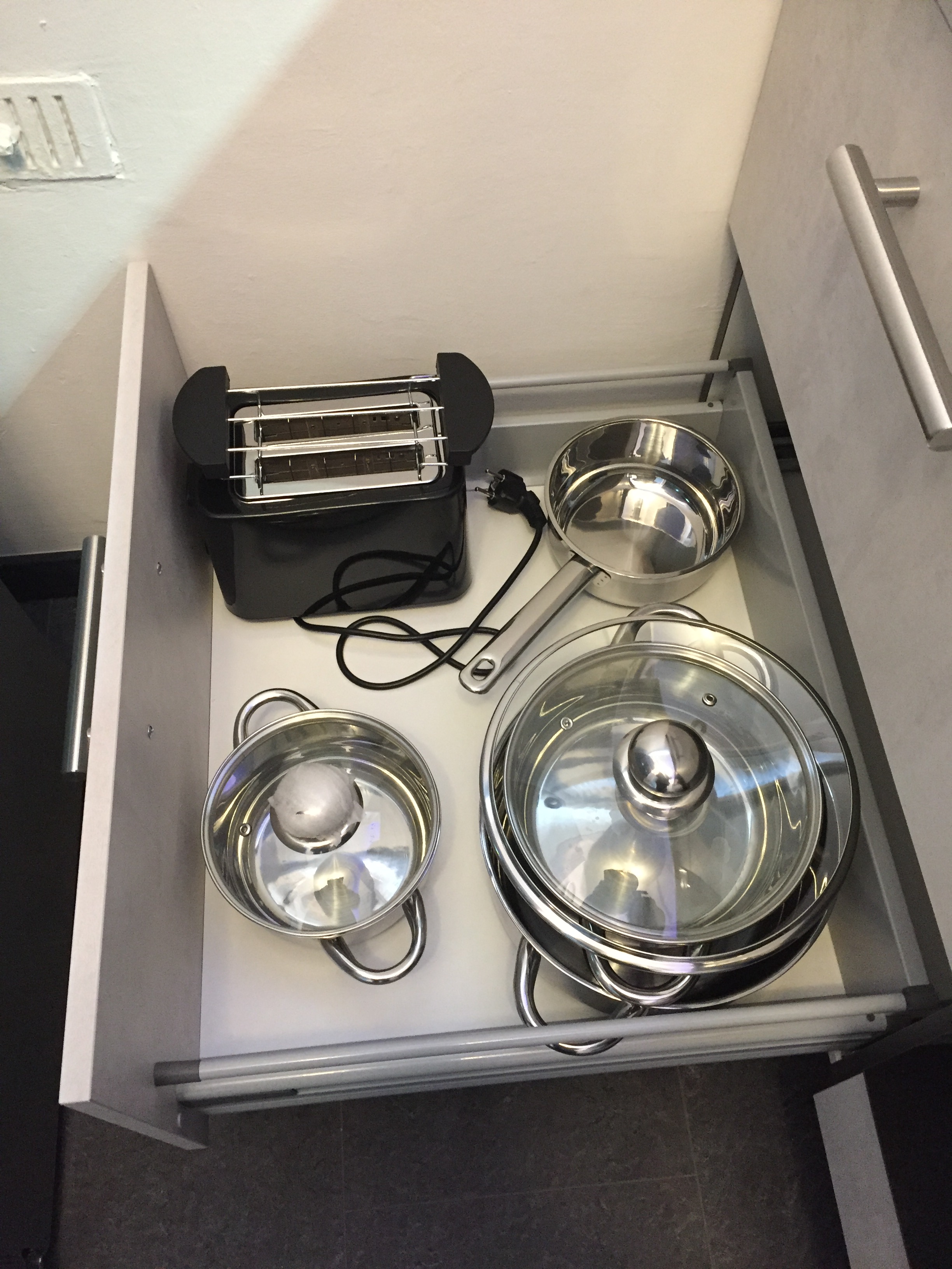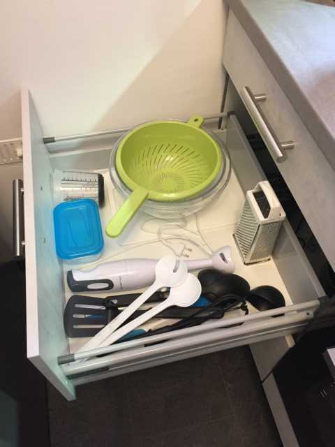 Waschmaschine , Induktionskochfeld, Mikrowelle, Toaster, Wasserkocher sowie komlpettes Geschirr und Kochutensilien.